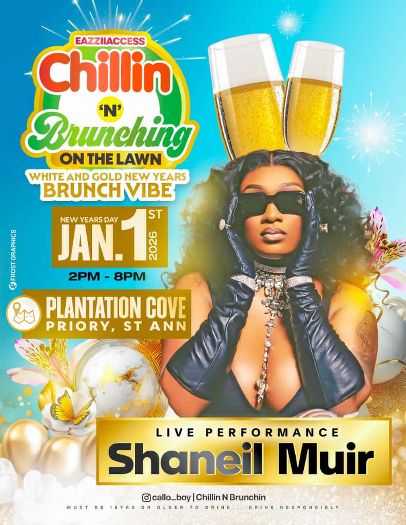 Plantation Cove, Priory, JamaicaIt's A New Year Brunch Vibe Ladies lets celebrate in fine style on NEW Year's Day 2026. Team Eazzii Access invites you to Chillin n Brunchin on the Lawn at Plantation Cove, Prioy, St. Ann on Thursday January 1st. Performing live is the beautiful SHANIEL MUIR! Brunch starts at 2pm and ends at 8pm. This is a food inclusive event. So Come Out Early, Lets Party On The Lawn.