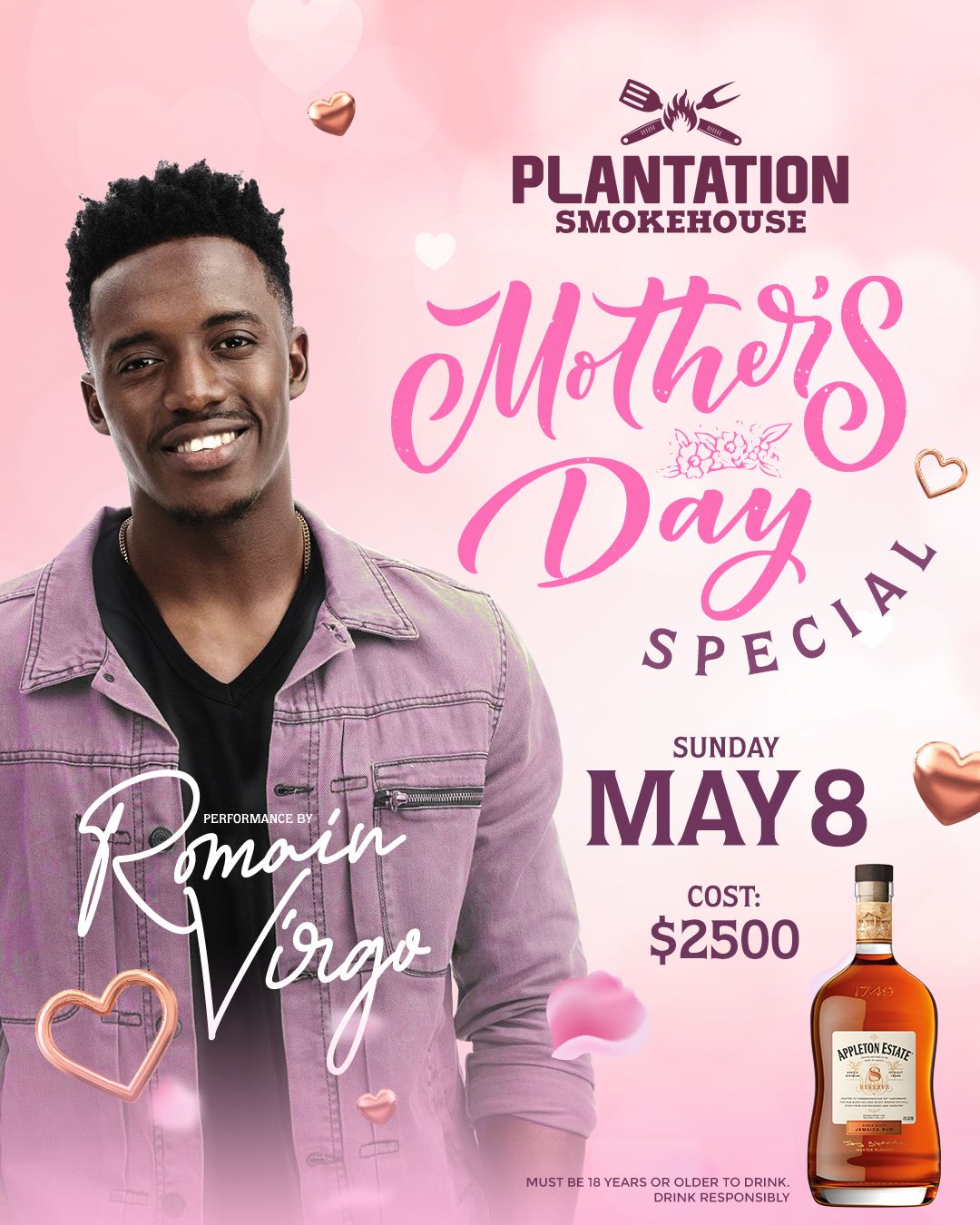 Plantation Smokehouse, Richmond, Priory, Saint Ann's Bay, JamaicaWhat does your mom mean you? Bring Mommy out this Mother’s Day and let Romain Virgo serenade her with some sweet music and let her know how much she means to you!