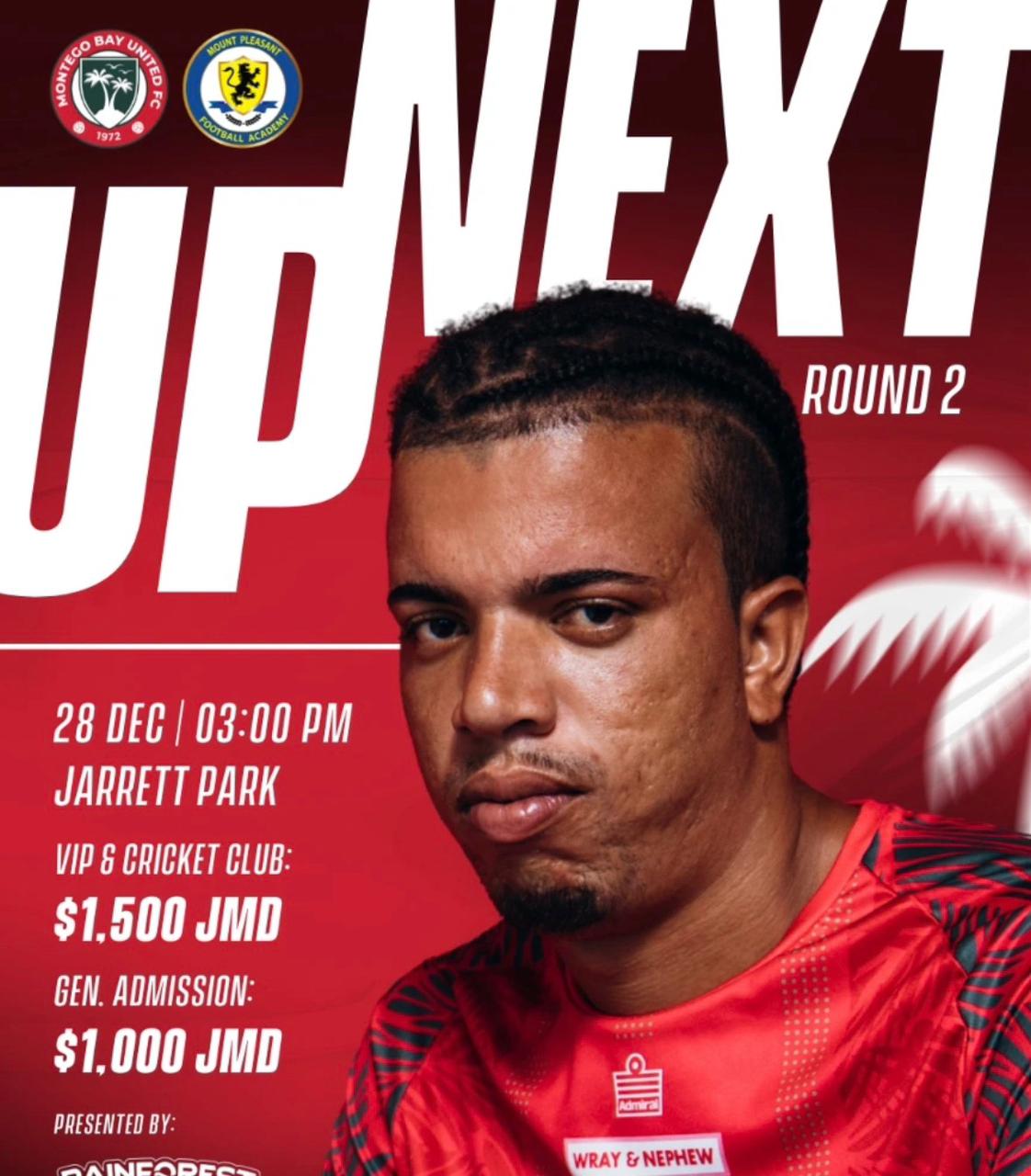 Jarrett Park, Montego Bay, JamaicaMontego Bay United Football Club vs Dunbeholden Football Club. Sunday, January 11, 2025, at Jarrett Park. Starting 3:00 PM Tickets: $1,500 VIP $1,500 Cricket Club (Parking Included) $1000 General