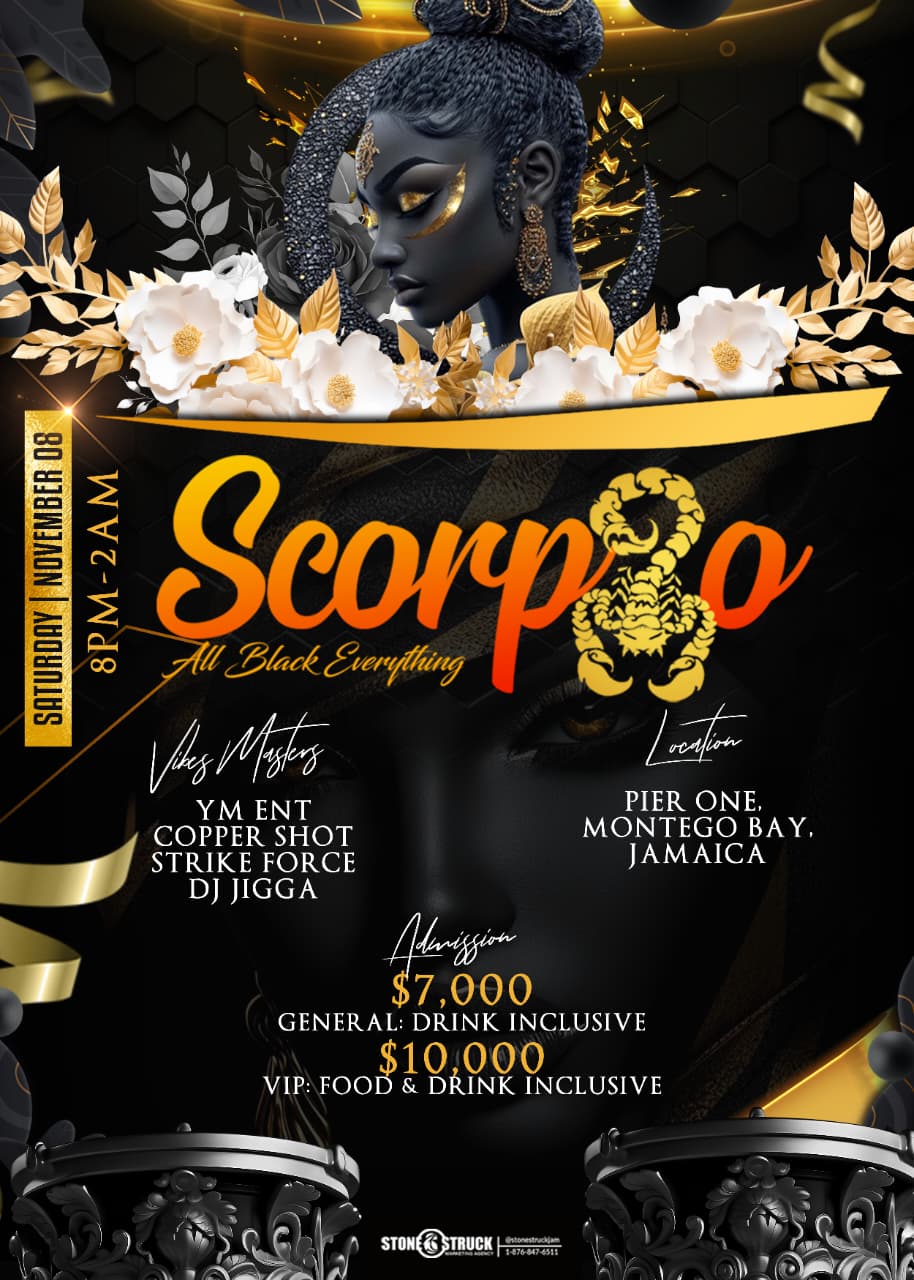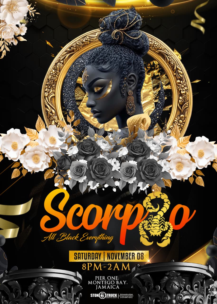 Pier One, Montego Bay, JamaicaWestern Jamaica's Premium All black event is back! Its Scorpio All Black Everything on Saturday November 8th at Pier 1 Montego Bay starting at 8pm-2am. Dress Code : Black (Semi-Formal/Casually Elegant).